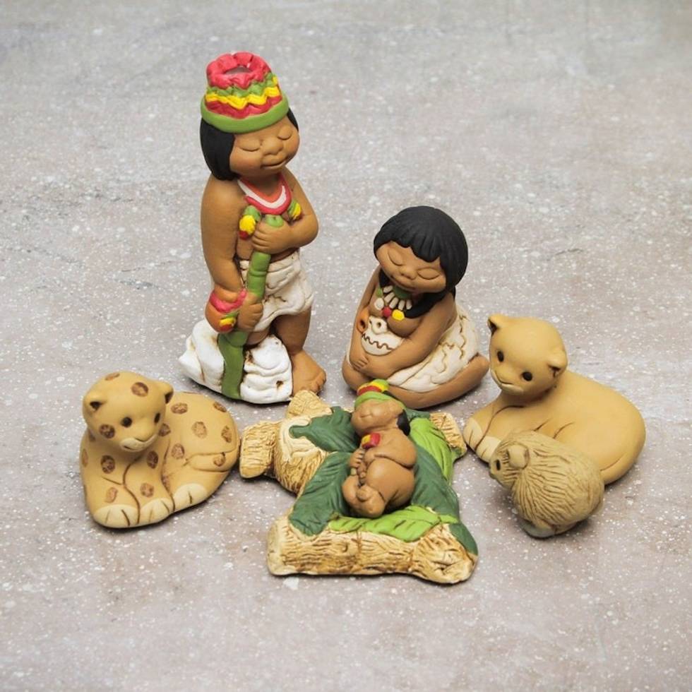 Handpainted Traditional Nativity Scene from Peru Set of 7 'Born in the Amazon' Item ID: 2671402780