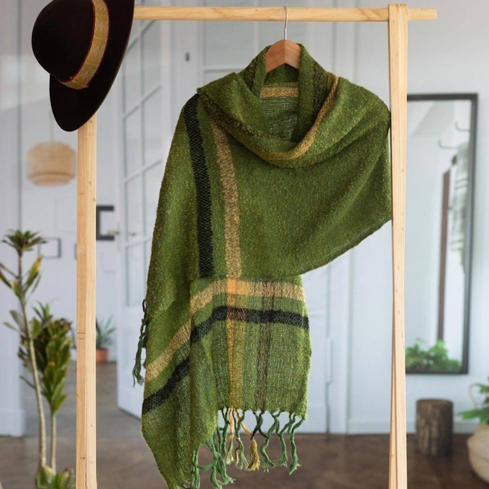 Handwoven Alpaca Blend Shawl in Moss Green from Peru 'Moss Elegance' Item ID: 2671399733