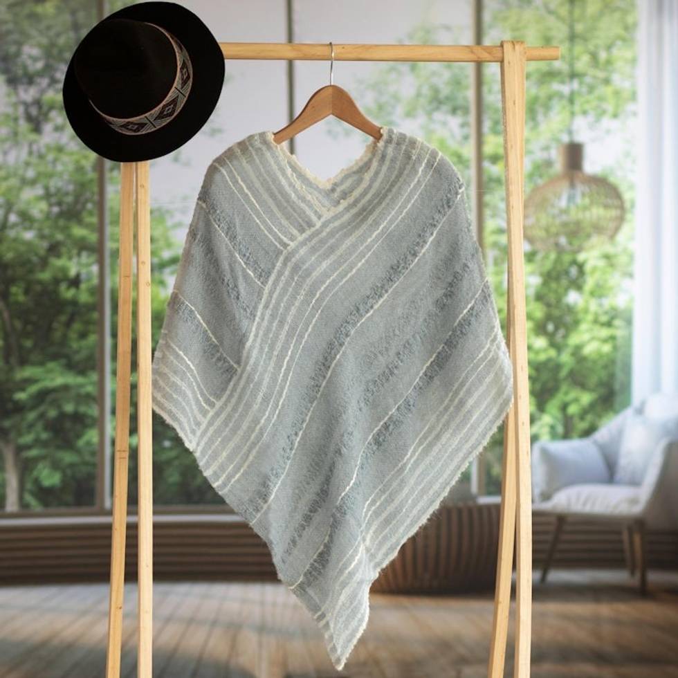 Handwoven Baby Alpaca Blend V-Neck Poncho from Peru 'Grey Softness' Item ID: 2669904371