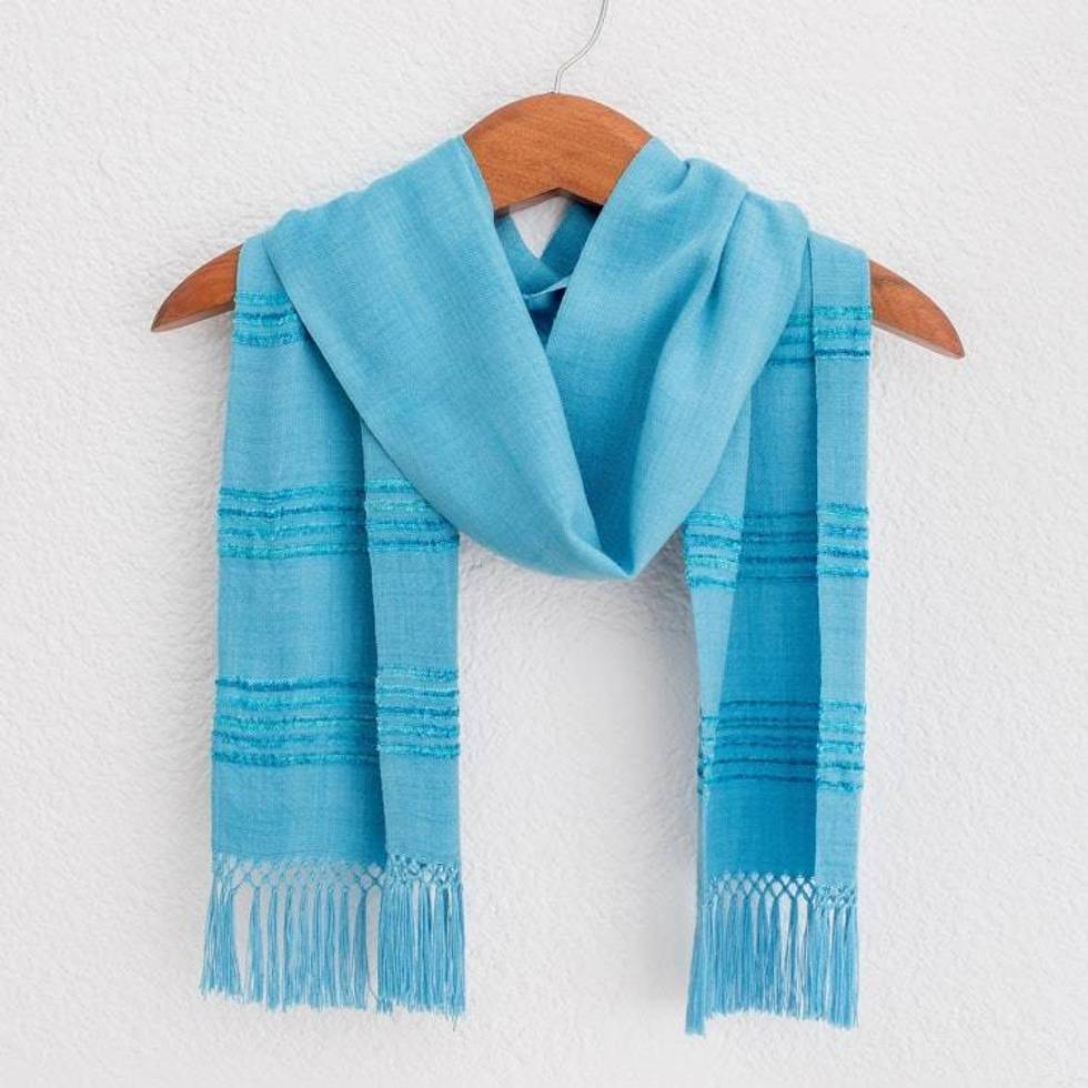 Handwoven Blue and Turquoise Rayon Fiber Scarf 'Mystic Maya Sky' Item ID: 2676659869