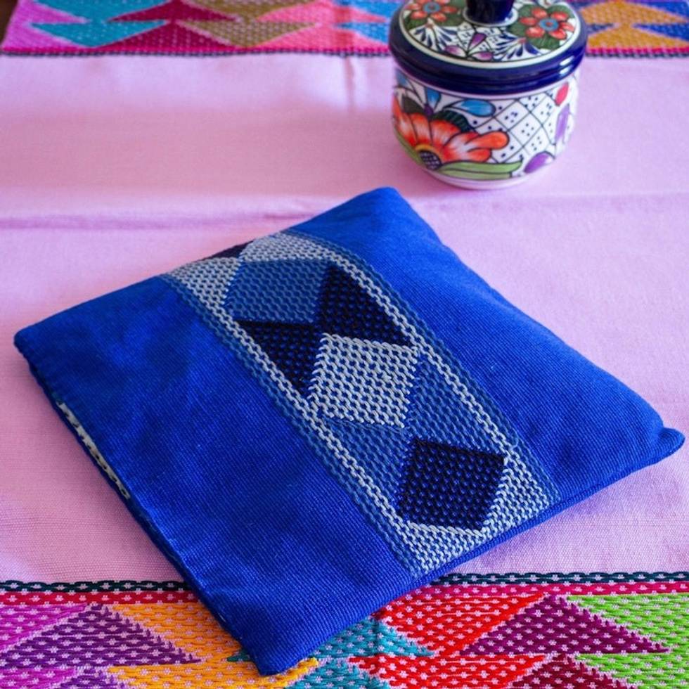 Handwoven Blue Cotton Tortilla Warmer from Mexico 'Agua Azul' Item ID: 2671808220