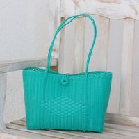 Handwoven Cerulean Tote Handbag from Guatemala 'Bright Morning' Item ID: 2671626635