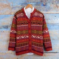 Handwoven Cherry Alpaca Blend Cardigan with Inca Motifs 'Empire Memories' Item ID: 2671819257
