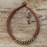 Handwoven Cord Bracelet in Tan with Silver Beads 'Tribal Flowers in Tan' Item ID: 2671802163