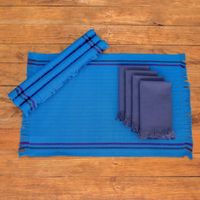 Handwoven Cotton Blue Placemats with Napkins Set of 4 'Blue Wellness' Item ID: 2671771668