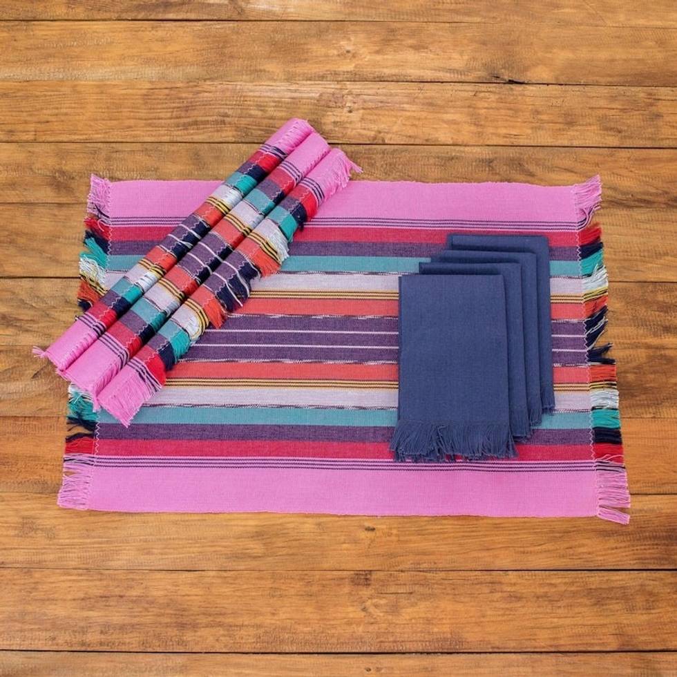 Handwoven Cotton Bubblegum Placemats with Napkins Set of 4 'Bubblegum Paths' Item ID: 2671771725