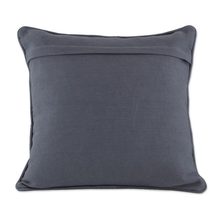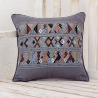 Handwoven Cotton Cushion Cover in Smoke from Guatemala 'Ancestral Depictions in Smoke' Item ID: 2671780237