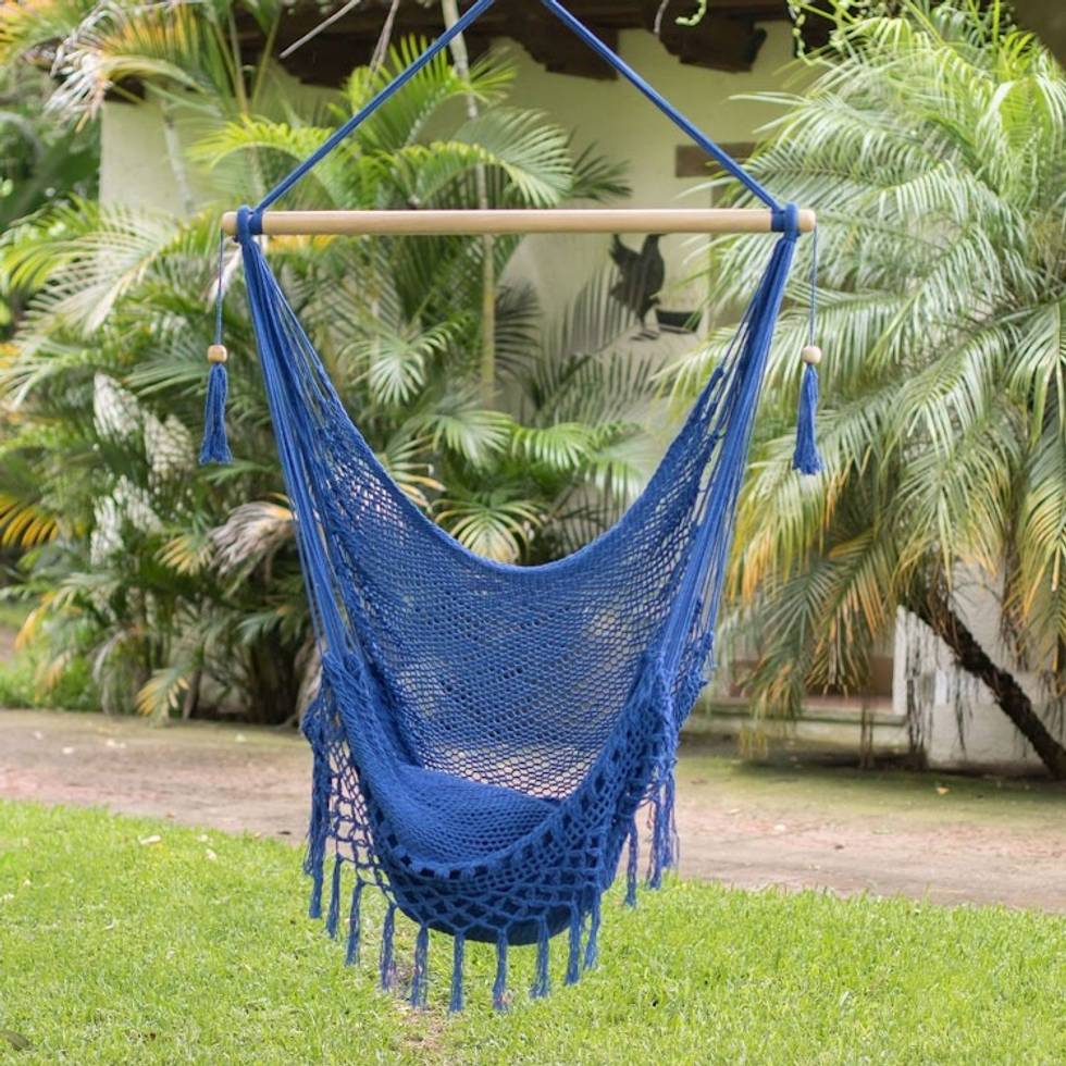 Handwoven Cotton Hammock Swing in Lapis Single 'Simple Relaxation in Lapis' Item ID: 2671777016