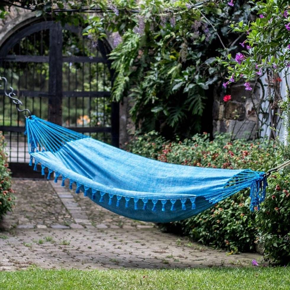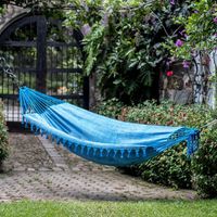 Handwoven Cotton Single Hammock in Azure from Guatemala 'Over the Waves' Item ID: 2671780073