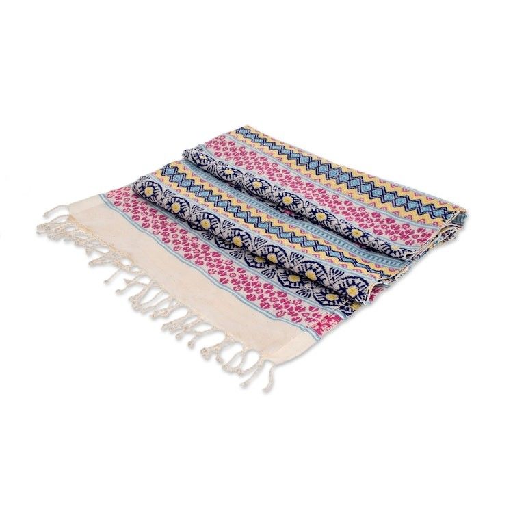 Handwoven Cotton Table Runner in Blue from Guatemala 'Guatemala is Life' Item ID: 2671777033