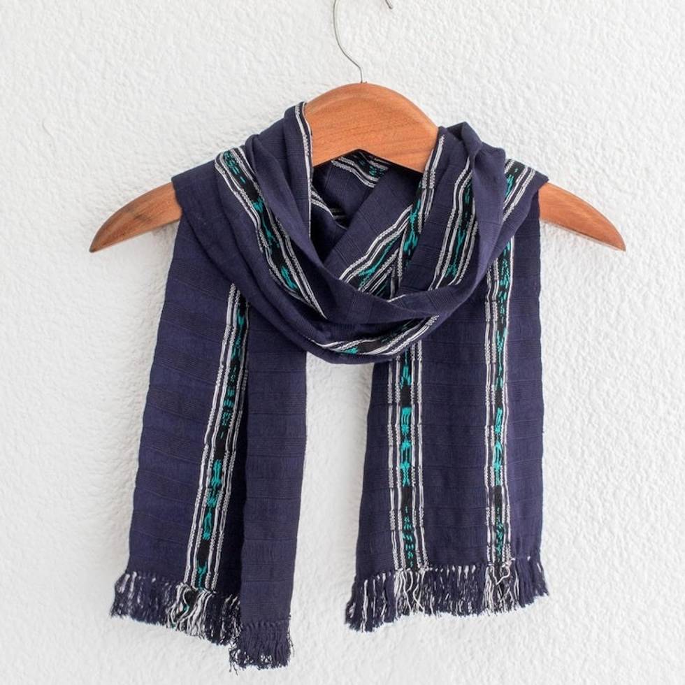 Handwoven Cotton Wrap Scarf in Navy from Guatemala 'Ocean Subtlety' Item ID: 2669923514