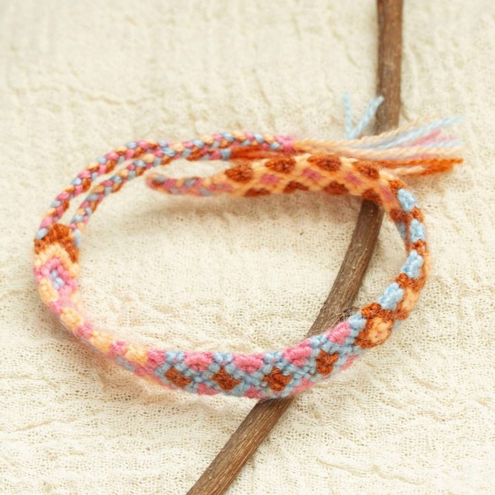 Handwoven Cotton Wristband Bracelet with Geometric Details 'Yellow Diamonds' Item ID: 2671640498