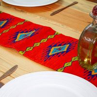 Handwoven Diamond-Patterned Scarlet 100 Wool Table Runner 'Jewels of Scarlet' Item ID: 2676647262