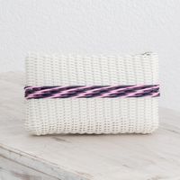 Handwoven Eco Friendly Clutch in White 'Enchantment of Color in White' Item ID: 2671777226