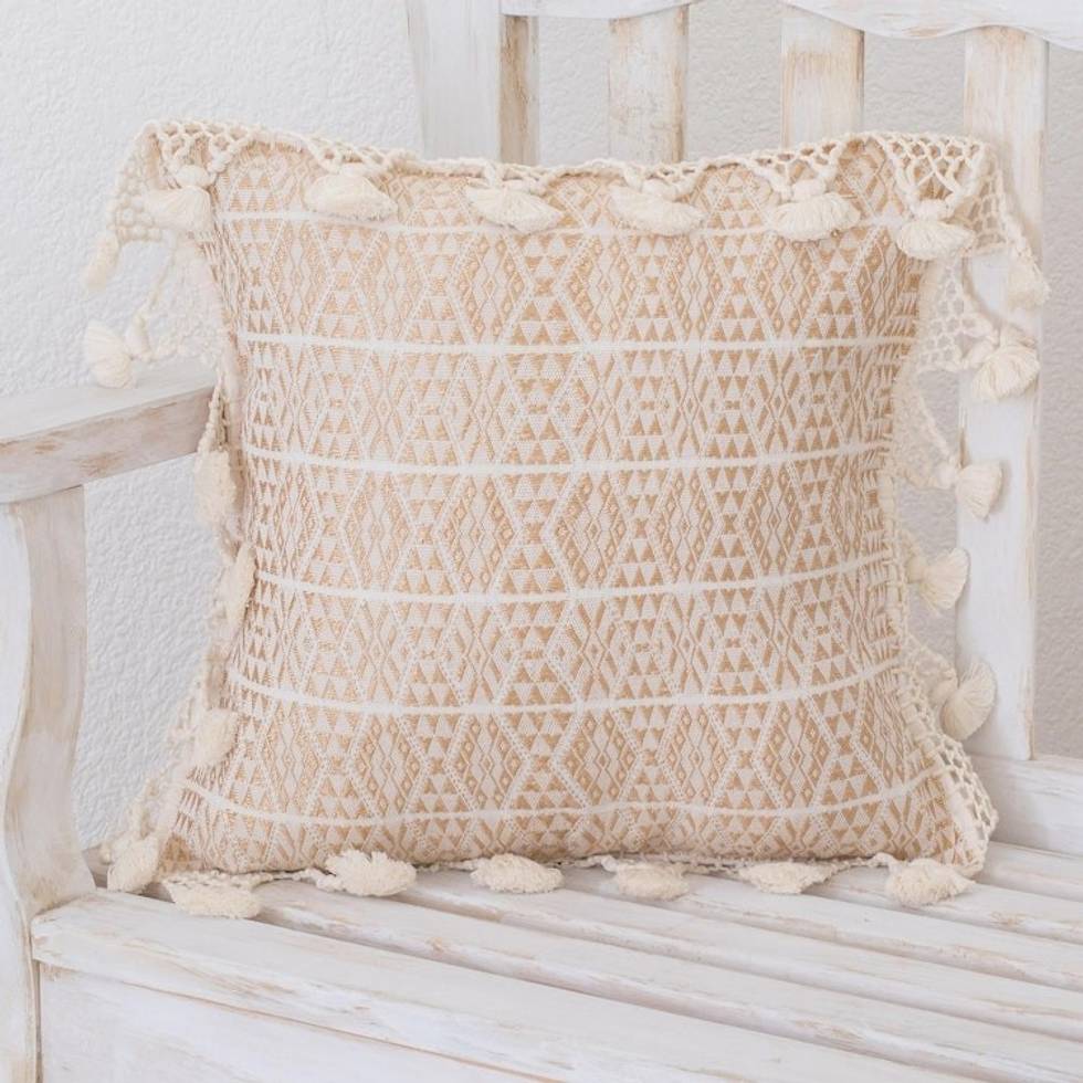 Handwoven Geometric Cotton Cushion Cover in Eggshell 'Traditional Motifs in Eggshell' Item ID: 2671777255