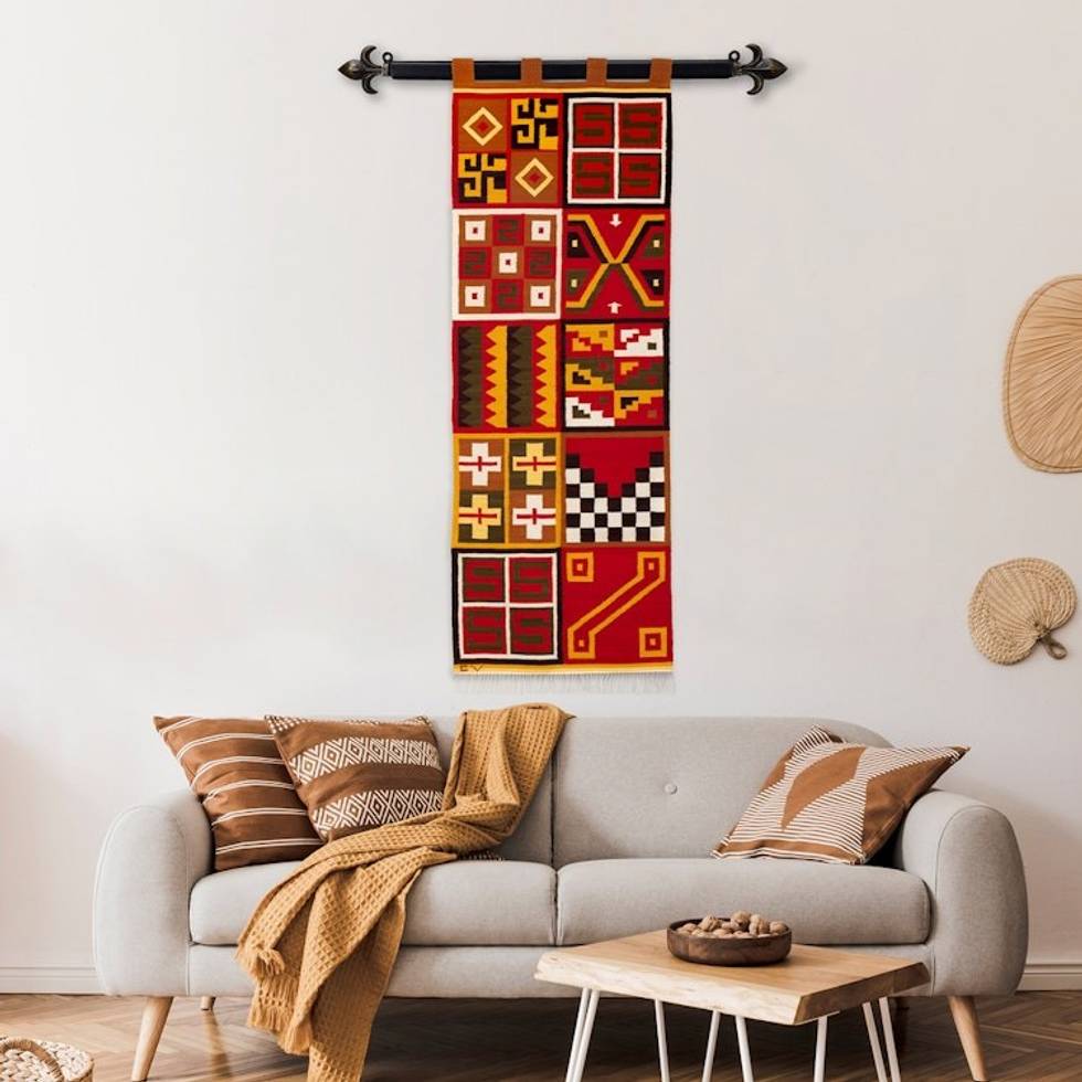 Handwoven Geometric Traditional Wool and Cotton Tapestry 'Civilizations' Item ID: 2671697817