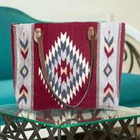 Handwoven Leather Accent Red Wool Zapotec Tote Bag 'Red Starburst' Item ID: 2671808171