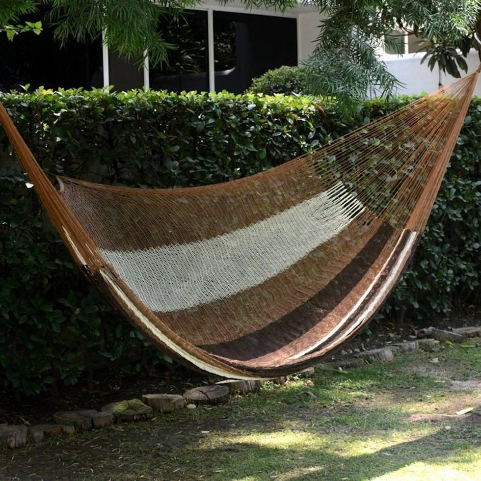 Handwoven Mayan Striped Double Hammock in Brown from Mexico 'Near the Sea' Item ID: 2671809032