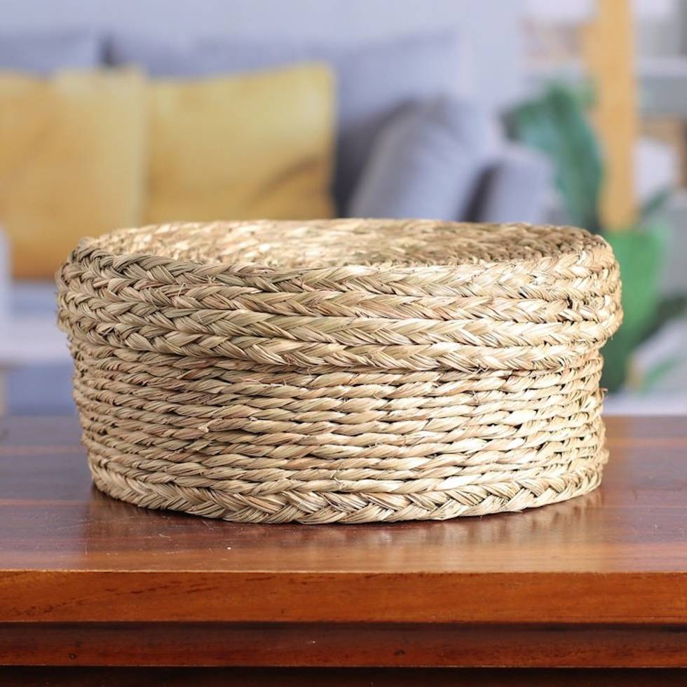 Handwoven Minimalist Round Natural Sabai Grass Fiber Basket 'Rural Minimalism' Item ID: 2671783115