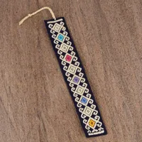 Handwoven Multi-Color Embroidered Cotton Bookmark 'Star Garden' Item ID: 2669933075