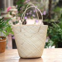 Handwoven Natural Cream Rattan Open Top Tote 'Natural Cream' Item ID: 2671737124