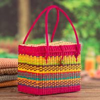 Handwoven Natural Rush Fiber Basket Painted in Vibrant Hues 'Dream Environment' Item ID: 2671697980