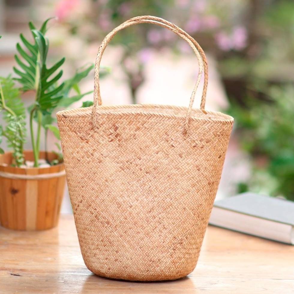 Handwoven Natural Tan Rattan Open Top Tote 'Natural Tan' Item ID: 2671737567