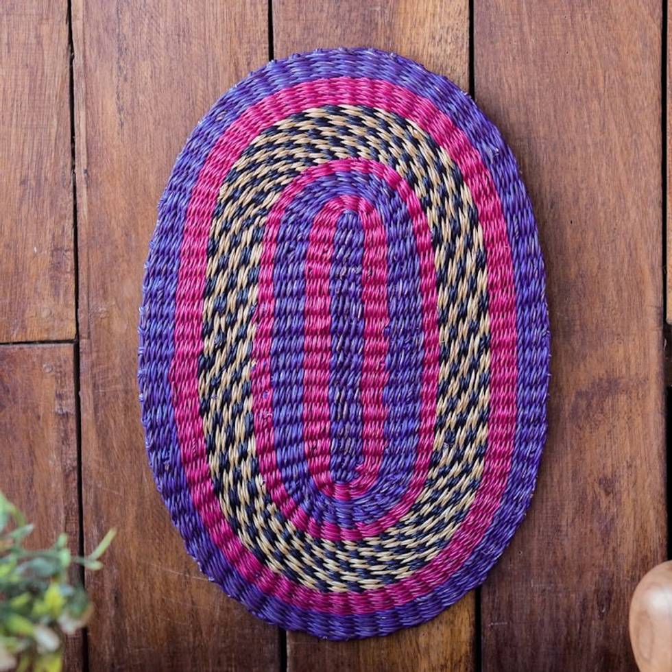 Handwoven Oval Cerise and Sapphire Raffia Wall Art 'Queen's Happiness II' Item ID: 2671804450