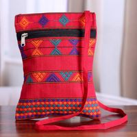 Handwoven Poppy-Toned Colorful Passport Bag with Zipper 'Audacious Traveler' Item ID: 2671782447