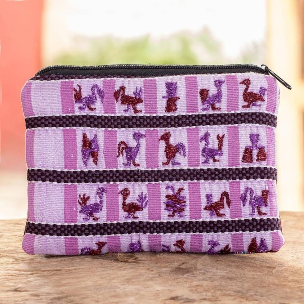 Handwoven Purple Coin Purse With Bird Motif From Guatemala 'Purple Flock' Item ID: 2671772253