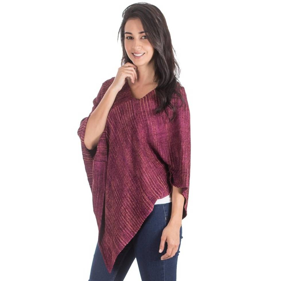 Handwoven Rayon Poncho with Striped Patterns from Guatemala 'Creation of Love' Item ID: 2669934103