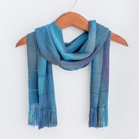 Handwoven Rayon Wrap Scarf in Blue from Guatemala 'Smooth Breeze in Blue' Item ID: 2671778950