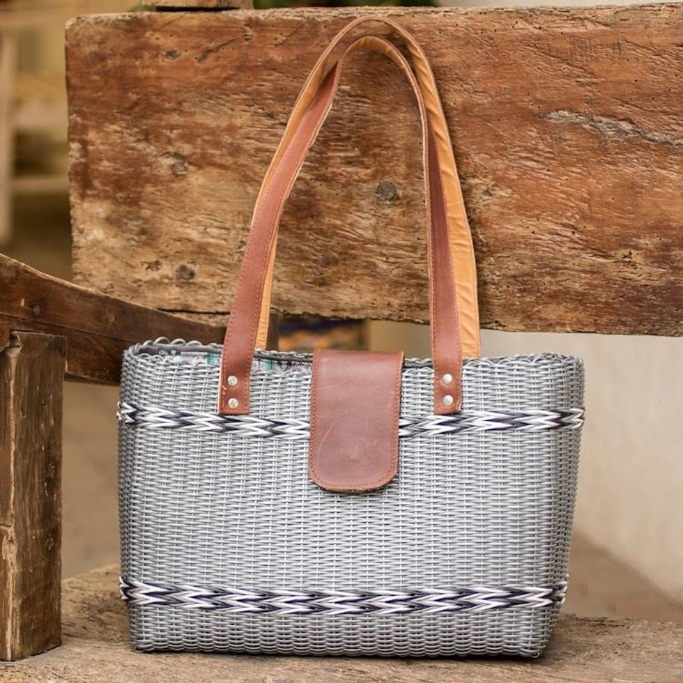 Handwoven Recycled Vinyl Cord Grey Shoulder Bag 'Grey Winter' Item ID: 2671772562