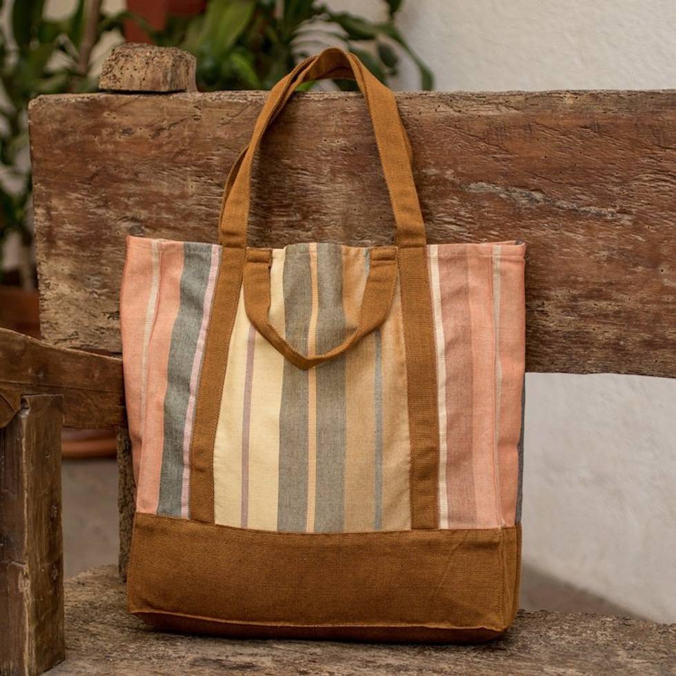 Handwoven Striped Brown-Toned Cotton Tote Bag from Guatemala 'Earthy Illusion' Item ID: 2671770689