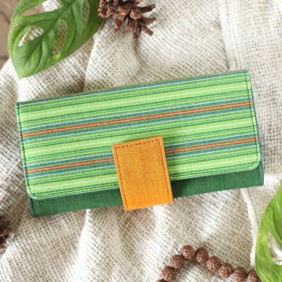 Handwoven Striped Green and Yellow Cotton Clutch from Java 'Green Sekaten' Item ID: 2671763061