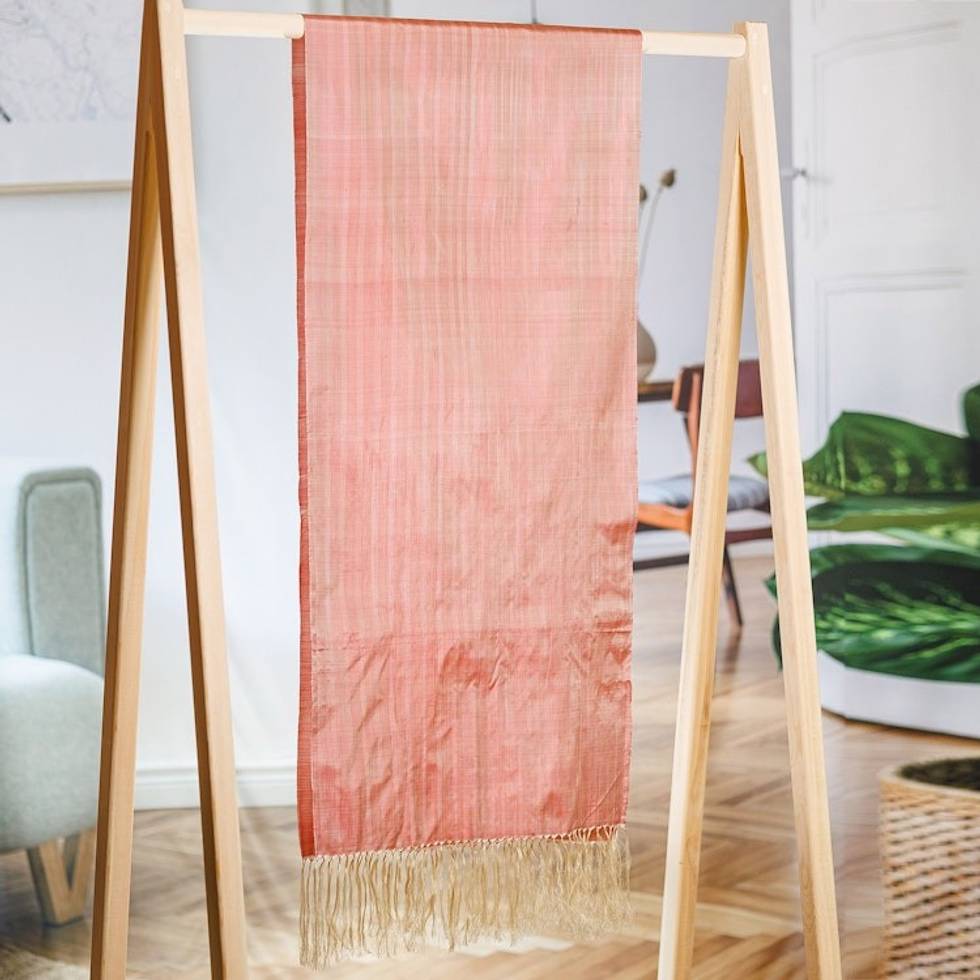 Handwoven Striped Pink Silk Shawl with Fringes 'Dulcet of the Desert' Item ID: 2669935063