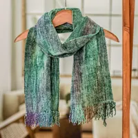 Handwoven Teal Rayon Chenille Scarf from Guatemala 'Enchanted Forest' Item ID: 2671626541
