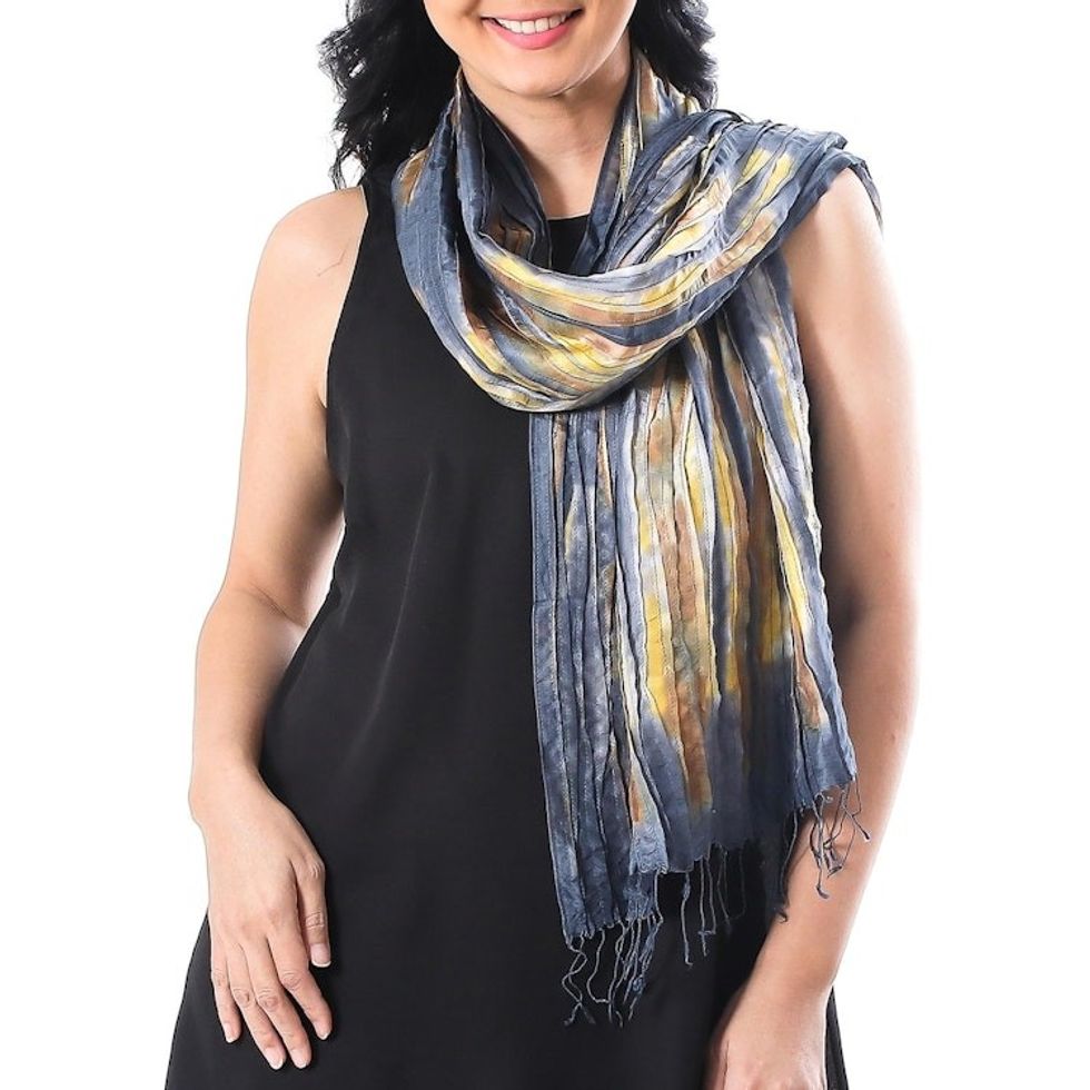 Handwoven Tie-Dyed Multicolored Silk Scarf from Thailand 'Lovely Magic' Item ID: 2671800904