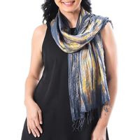 This scarf has a wide weave and is made from spun cotton. The workmanship is stunning. I love it!