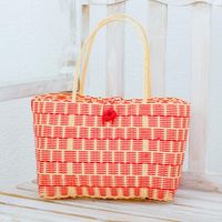 Handwoven Tote in Strawberry Red and Cornsilk 'Delightful Day in Strawberry' Item ID: 2669892106