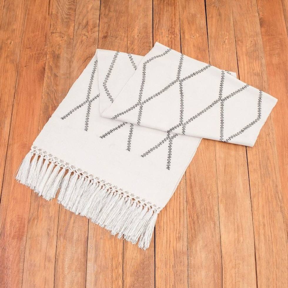 Handwoven White Cotton Table Runner with Diamond Pattern 'White Diamond Paths' Item ID: 2671768897