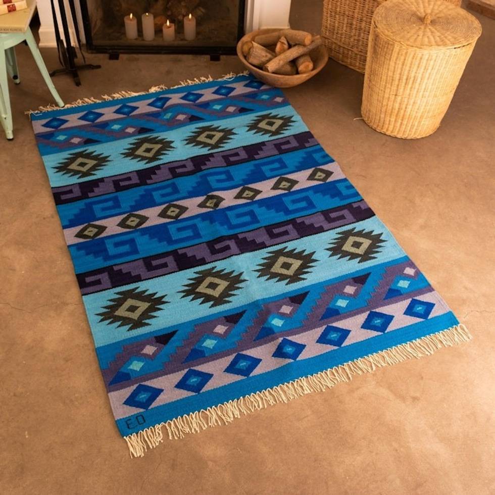 Handwoven Wool Area Rug in Blue 4x6 from Peru 'Incan Empire' Item ID: 2671691194