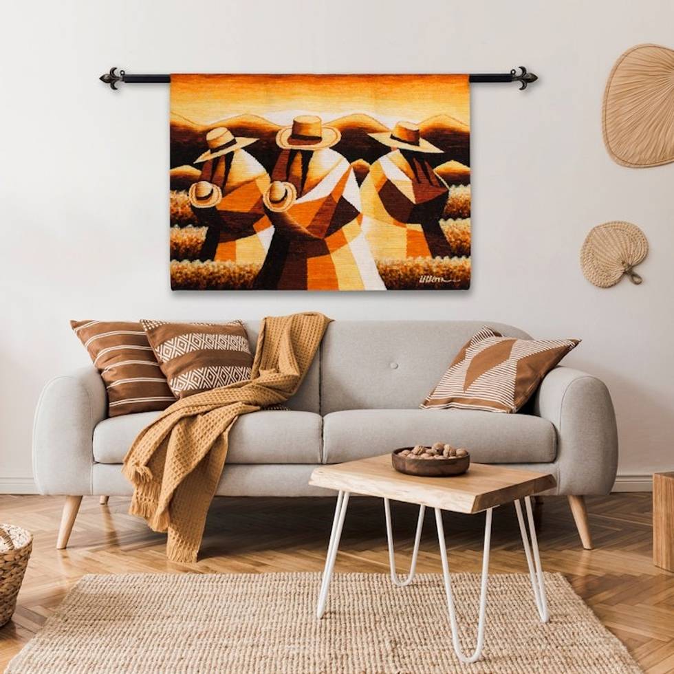 Handwoven Wool Tapestry of Andean Workers from Peru 'Sunset in the Andean Country' Item ID: 2671690985