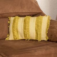 Handwoven Yellow Beige White Fringed Cotton Cushion Cover 'Diamond Allure' Item ID: 2671771155