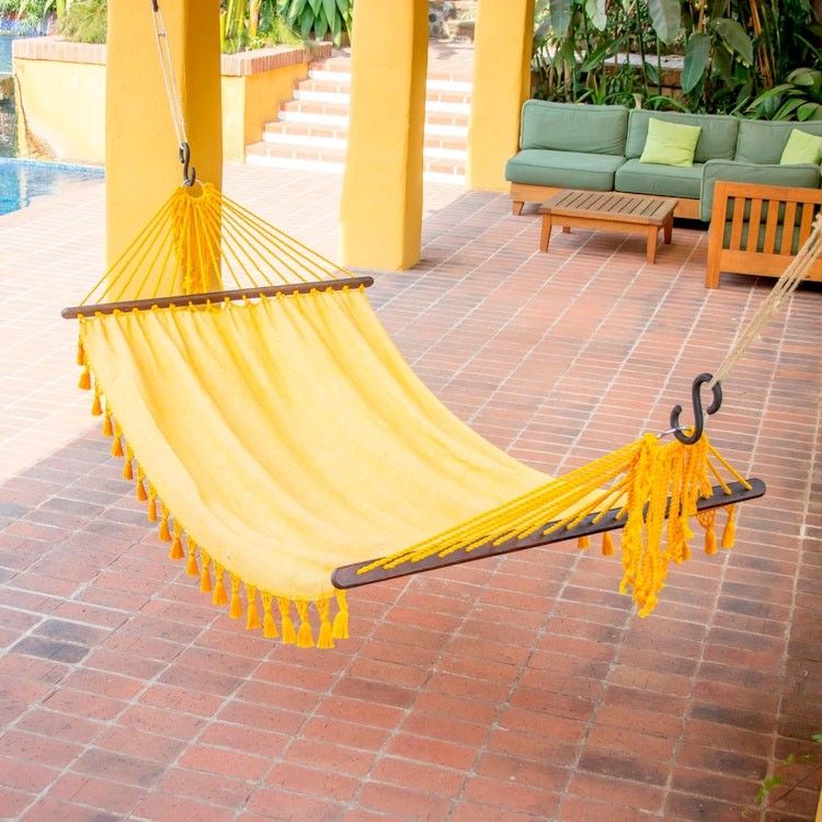 Handwoven Yellow Cotton Hammock Single from Guatemala 'Take Me to the Sun' Item ID: 2671778820
