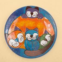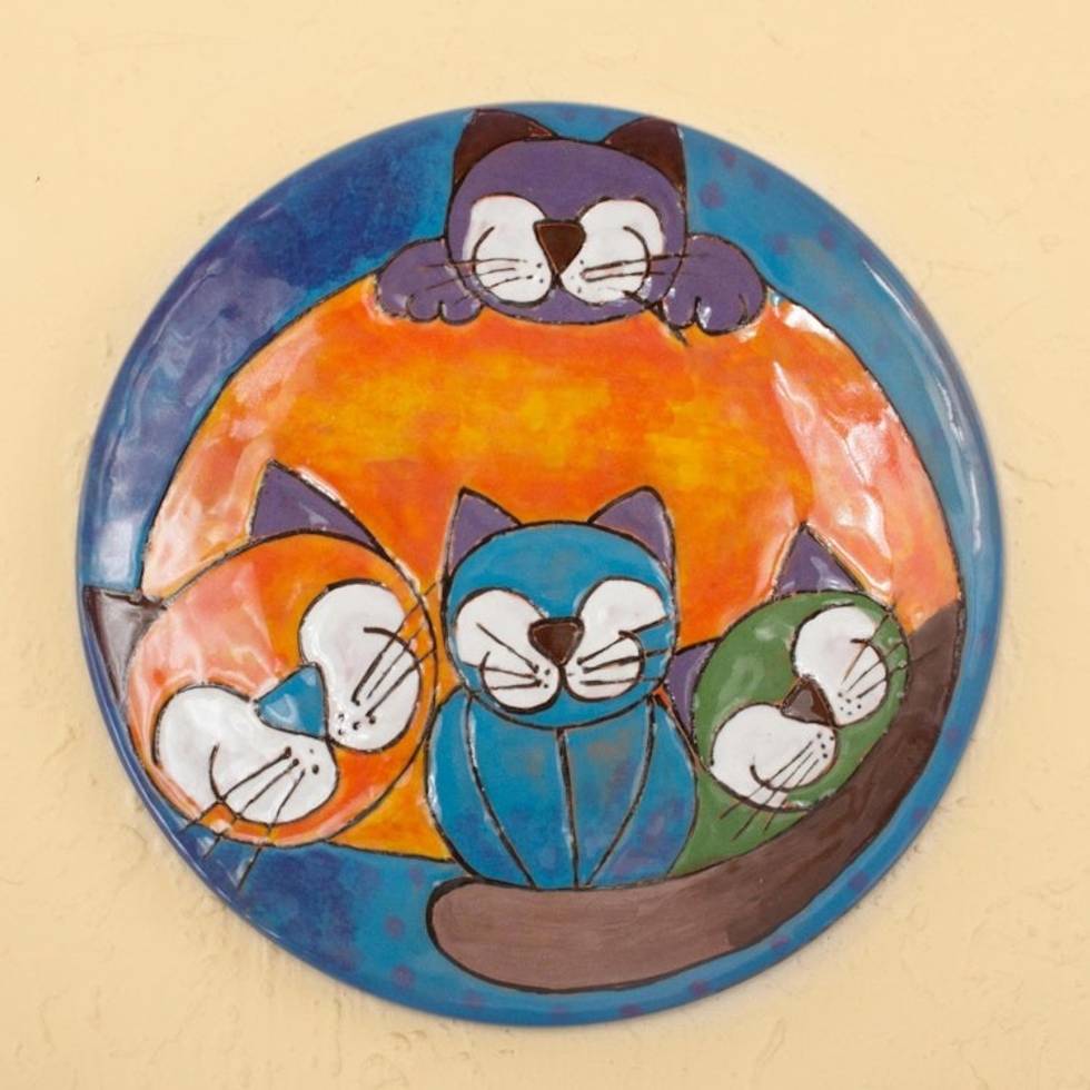 Happy Playful Cat Family Colorful Ceramic Decorative Plate 'Happy Cat Family' Item ID: 2669897625