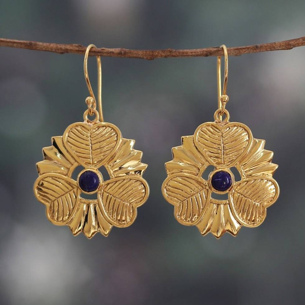 Heart and Flower-Themed Lapis Lazuli Dangle Earrings 'Crowns of Intellect' Item ID: 2671782442