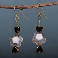 Heart and Flower-Themed Recycled Beaded Dangle Earrings 'Floral Liaison' Item ID: 2676646530