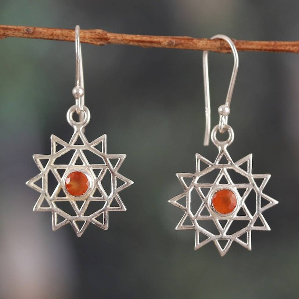 Heart Chakra-Shaped Faceted Carnelian Dangle Earrings 'Fiery Chakra' Item ID: 2671781923