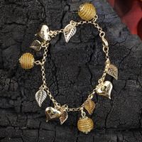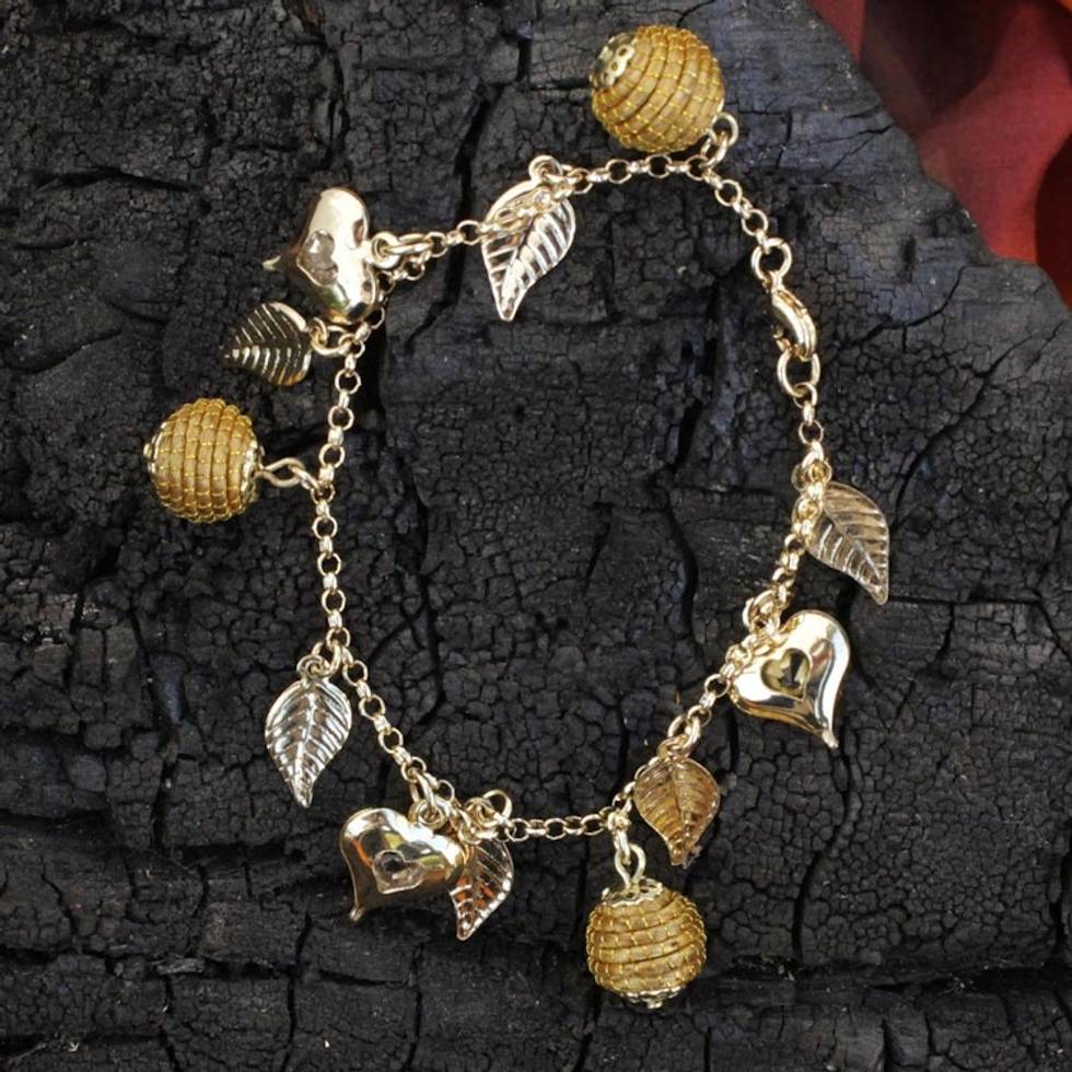 Heart Leaf Beehive Charms on Gold Plated Brazilian Bracelet 'Natural Friend' Item ID: 2669887418